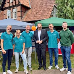 Besonders ehrenvoll: Der Vizekanzler Lars Klingbeil, MdB, Bürgermeisterin Helma Spöring und Landrat Jens Groteschauten am Stand vorbei und zeigten damit ihre Wertschätzung für unser Engagement.
